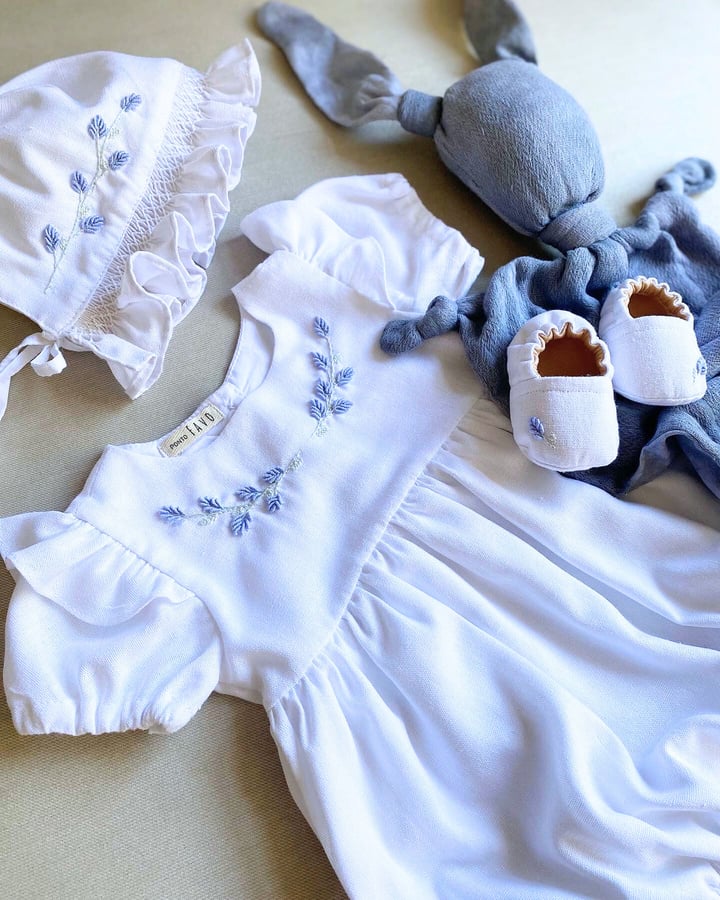 Cada peça é desenvolvida por mãos cuidadosas, participamos ativamente de cada etapa, iniciando no atendimento e partindo para a concepção, escolha dos materiais, corte, costura, bordado e finalização em embalagem desenvolvida para preservar o produto